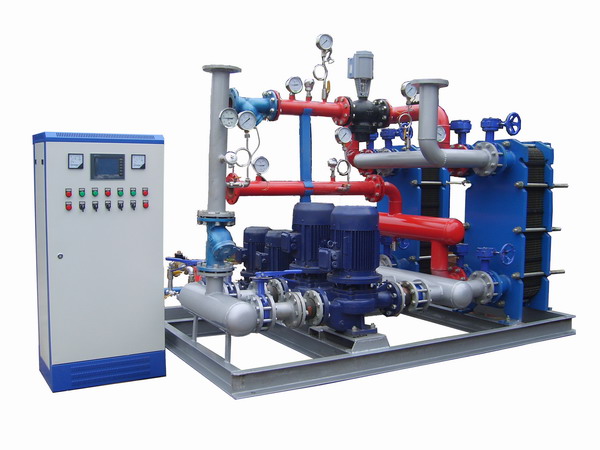 明日公司提供的換熱機組是一套組裝在機架上的熱交換組合裝置,包括板式換熱器、循環泵、補水泵、變頻器,測量調節與自動控制元件和所必備的管、閥附件。換熱機組運到現場后,只要與系統的熱源管道、用戶管道及補給水管道連接,并給控制柜通上電源即可投入運行。機組體積小、連接緊湊、便于操作和維修,同時考慮了運輸、吊裝、就位的方便。