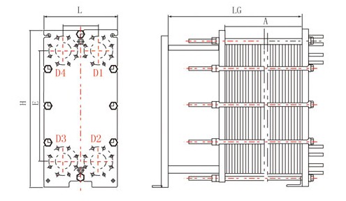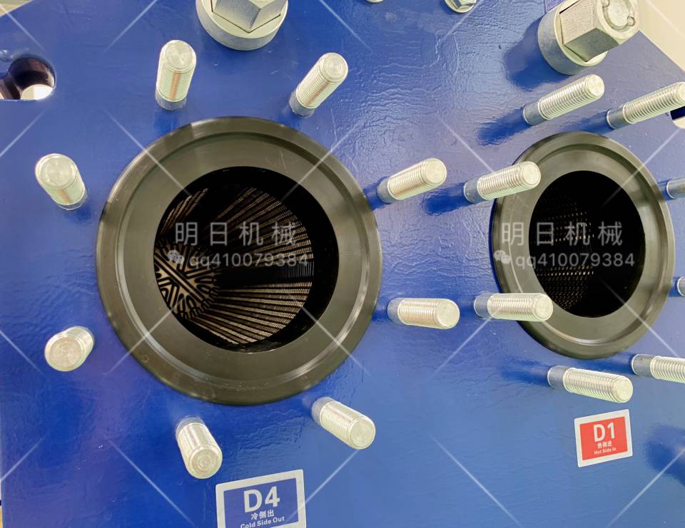 在波紋板片上粘有密封墊,密封墊設計成雙道密封結構,并具有信號孔。當介質如從第一道密封泄漏時,可從信號孔泄出,便能及早發現問題加以解決,不會造成兩種介質的混合。密封墊根據不同的介質和操作溫度選用不同的膠種。