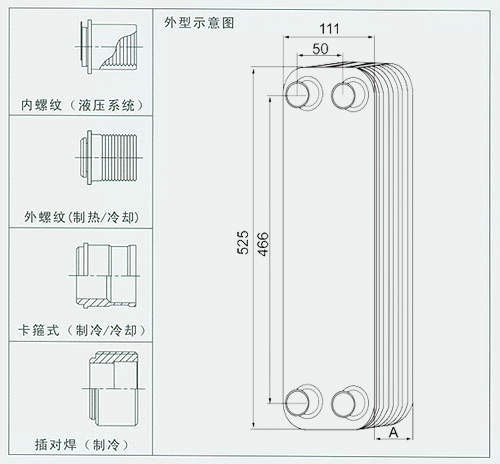 ·ZL50型釬焊板式換熱器覆蓋了制冷容量5~70W的范圍(2~25冷噸),可作為冷凝器和蒸發(fā)器使用,也可作為冷、過(guò)熱器使用,特別適合與小型家用中央空調(diào)。按使用場(chǎng)所的不同,ZL50分為兩種型號(hào)ZL50C和BL-50D,ZL50C可做冷凝器使用,ZL50D可以作為蒸發(fā)器。